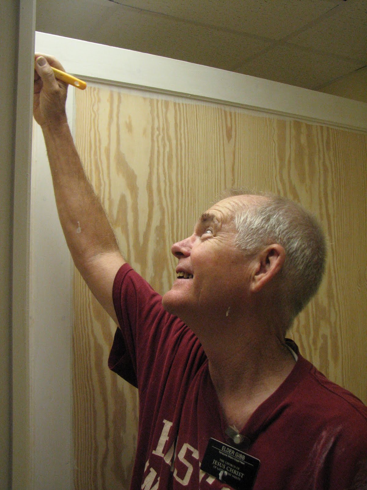 With the change in weather, we began to get lots of work done. Here's Stan doing his least favorite job (painting), and with a smile on his face. What a guy!